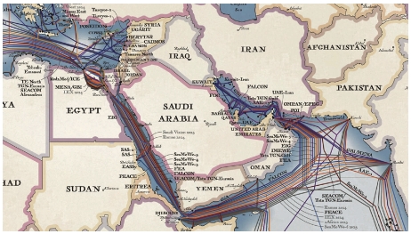 Submarine cables and underwater pipelines that crisscross the Gulf seabed support not only international financial and data-transit lines and business operations but also regional critical national security cables and pipelines. According to a 2021 NATO report, there has been an Iranian-flagged ship that repeatedly used a small UUV to approach undersea cables in the Gulf near Bushehr. At the time, there was no confirmation of sabotage, but being undetected to the proximity of undersea cable crossings was a capability in and of itself that presented a strategic message: A single strand of data cable out of hundreds of miles could, if cut, disconnect financial services, inter-GCC commerce, and delay military operations. Figure 3: Strategic submarine cables and pipeline routes in the Arabian Gulf. Source: Middle East Eye (2023).